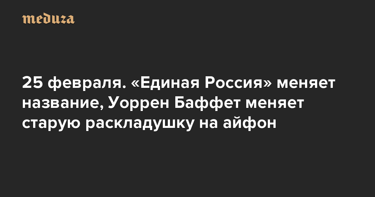 Вечерняя Медуза 25 февраля. «Единая Россия» меняет название, Уоррен Баффет меняет старую раскладушку на айфон