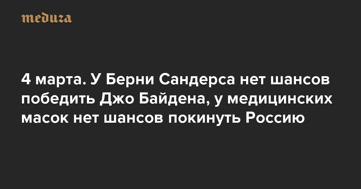 Вечерняя Медуза 4 марта. У Берни Сандерса нет шансов победить Джо Байдена, у медицинских масок нет шансов покинуть Россию