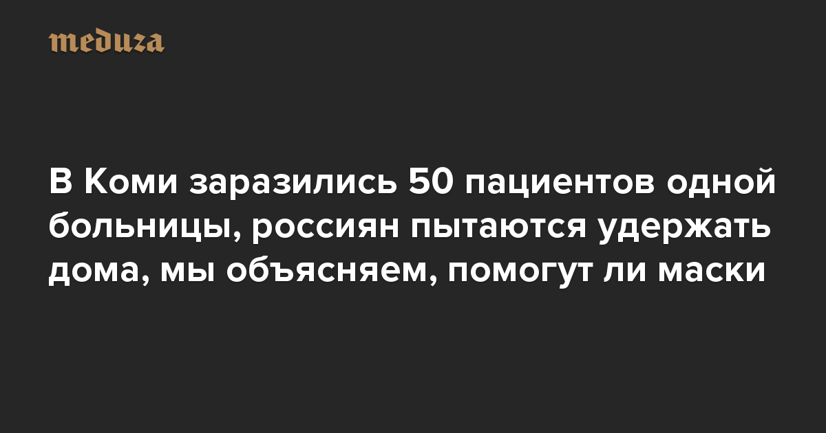 Вечерний Коронавирус В Коми заразились 50 пациентов одной больницы, россиян пытаются удержать дома, мы объясняем, помогут ли маски