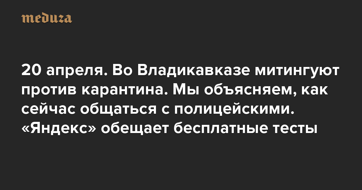 Вечерний Коронавирус 20 апреля. Во Владикавказе митингуют против карантина. Мы объясняем, как сейчас общаться с полицейскими. «Яндекс» обещает бесплатные тесты