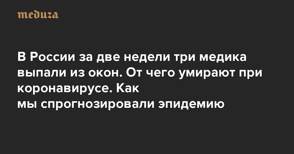 Вечерний Коронавирус В России за две недели три медика выпали из окон. От чего умирают при коронавирусе. Как мы спрогнозировали эпидемию