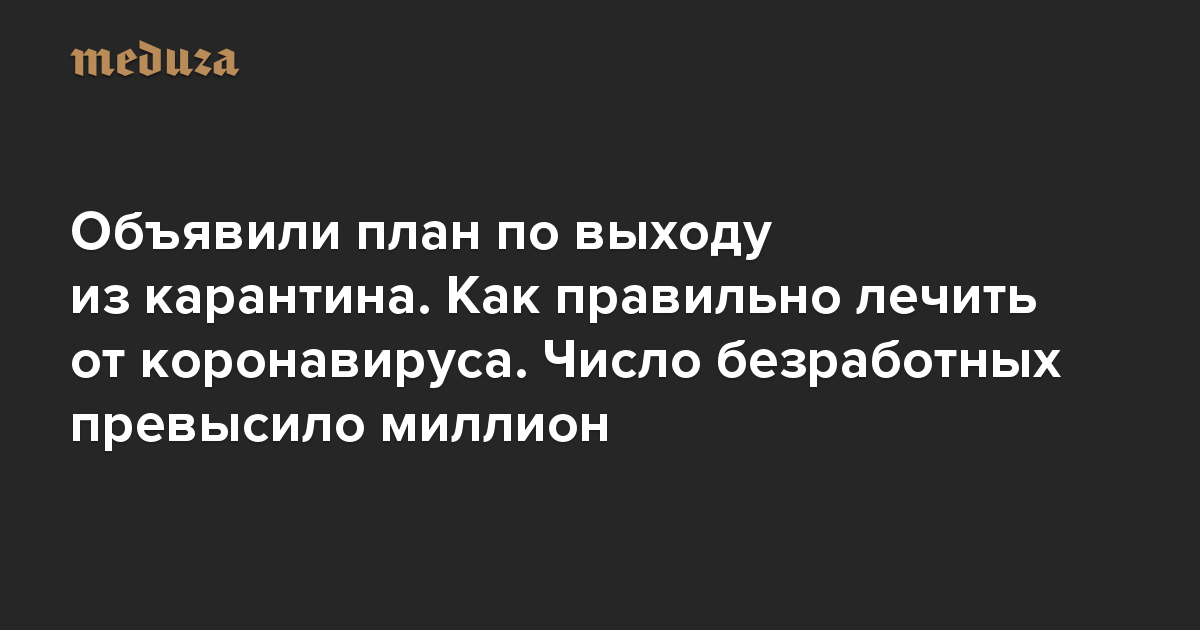 Вечерний Коронавирус Объявили план по выходу из карантина. Как правильно лечить от коронавируса. Число безработных превысило миллион