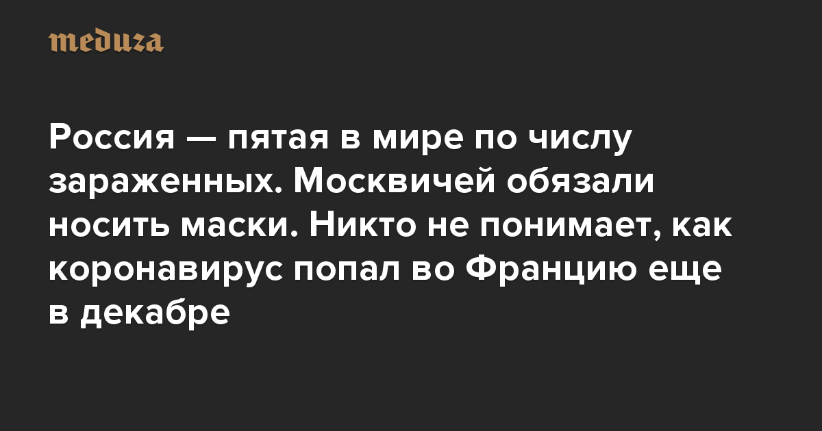 Вечерний Коронавирус Россия — пятая в мире по числу зараженных. Москвичей обязали носить маски. Никто не понимает, как коронавирус попал во Францию еще в декабре