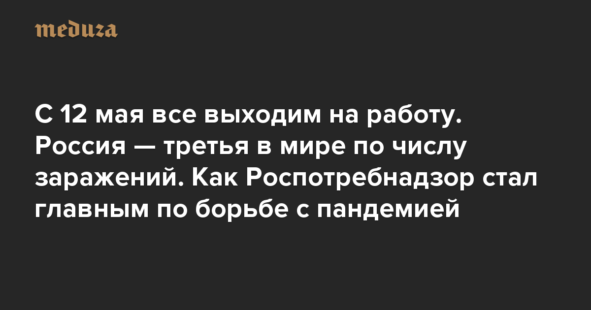 Вечерний Коронавирус С 12 мая все выходим на работу. Россия — третья в мире по числу заражений. Как Роспотребнадзор стал главным по борьбе с пандемией