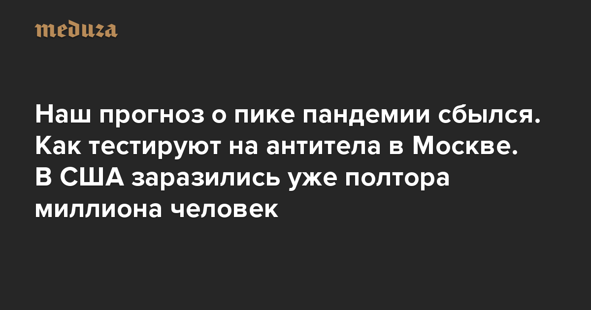 Вечерний Коронавирус Наш прогноз о пике пандемии сбылся. Как тестируют на антитела в Москве. В США заразились уже полтора миллиона человек