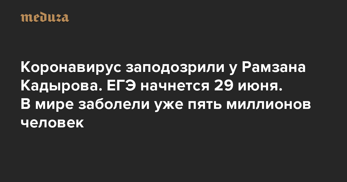 Вечерний Коронавирус Коронавирус заподозрили у Рамзана Кадырова. ЕГЭ начнется 29 июня. В мире заболели уже пять миллионов человек