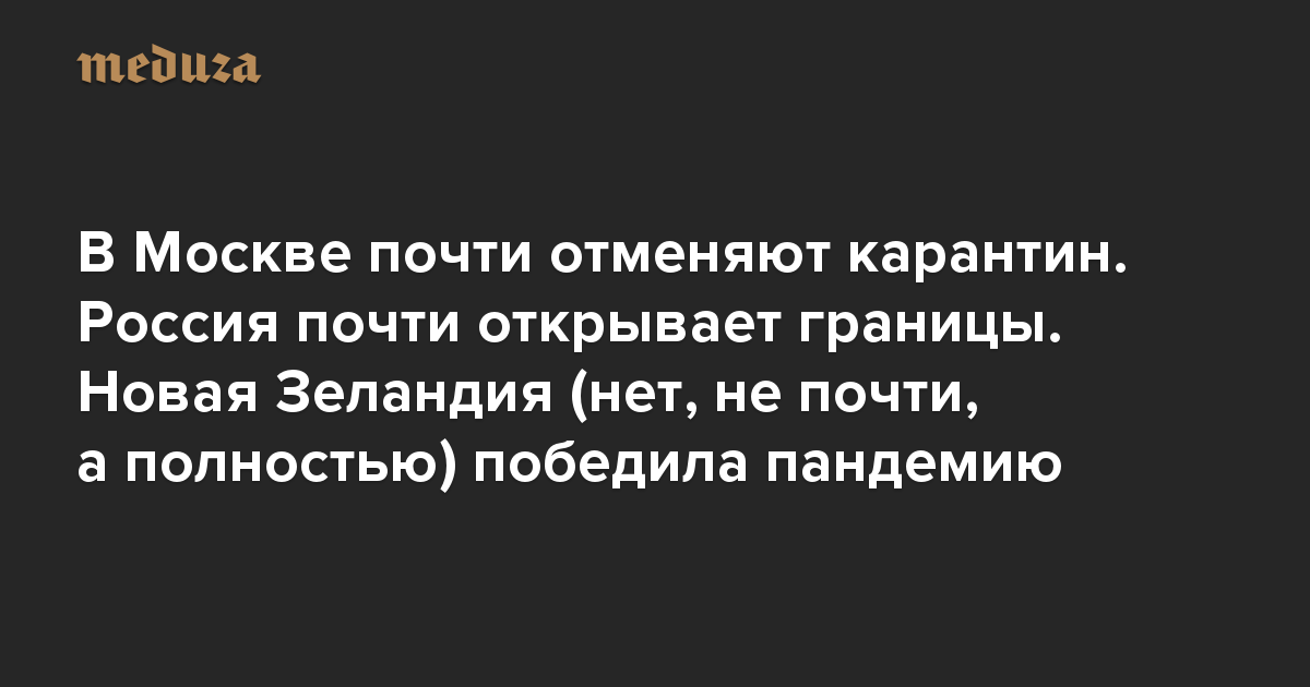 Вечерний Коронавирус В Москве почти отменяют карантин. Россия почти открывает границы. Новая Зеландия (нет, не почти, а полностью) победила пандемию