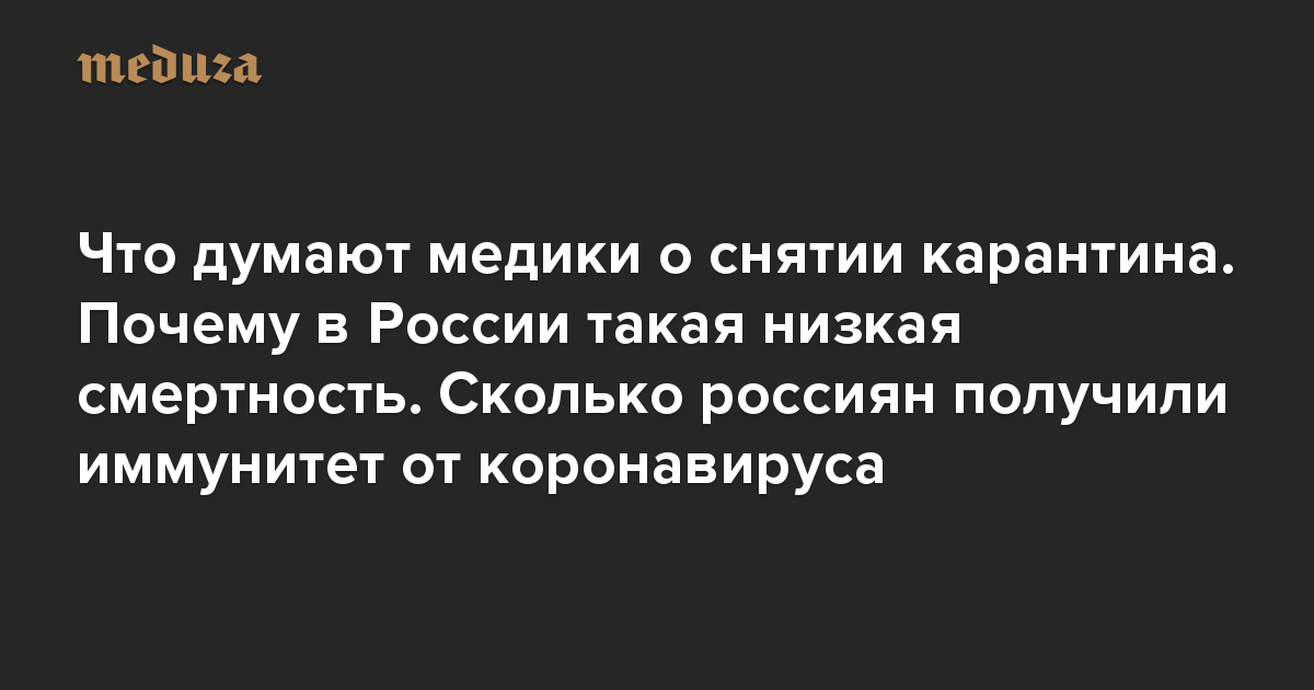 это рассылка «Медузы» о коронавирусе на время пандемии. Она выходит по будням вместо «Вечерней Медузы». Если это письмо вам прислал кто-то из знакомых и вы еще не подписаны на рассылку, подпишитесь здесь. Если вы читаете это на сайте, поделитесь ссылкой в социальных сетях.