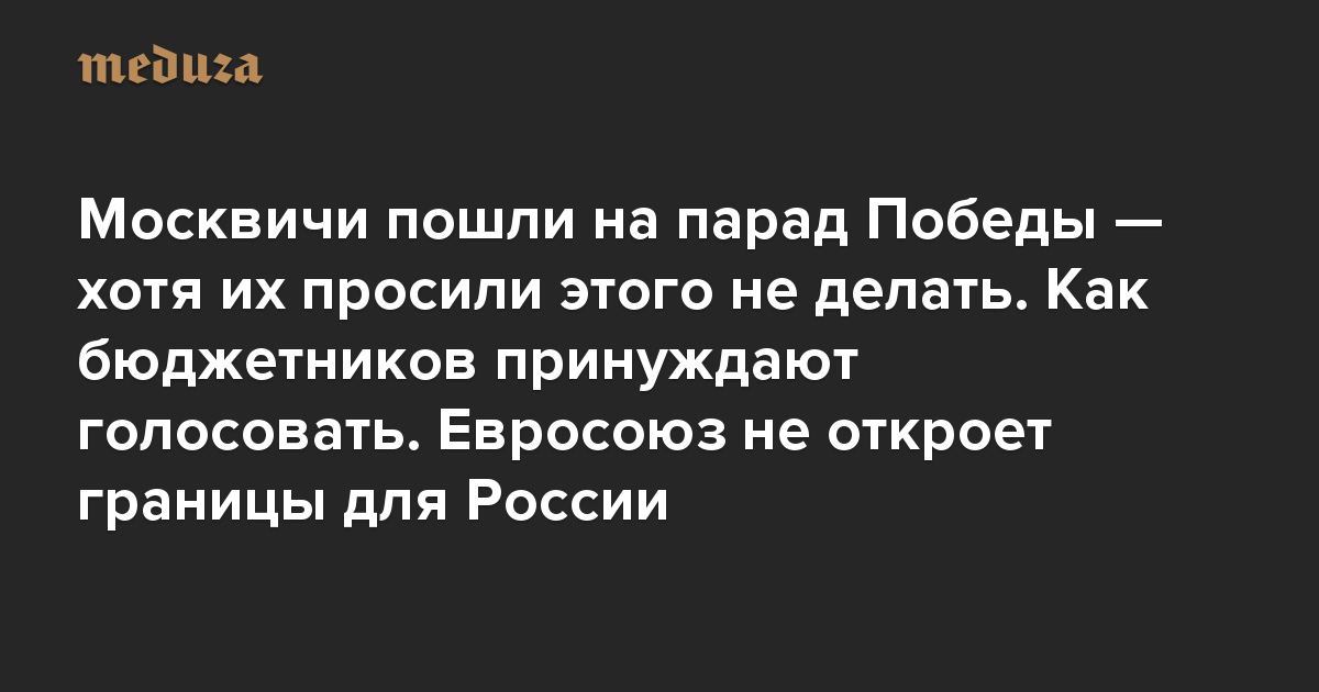 Вечерний Коронавирус Москвичи пошли на парад Победы — хотя их просили этого не делать. Как бюджетников принуждают голосовать. Евросоюз не откроет границы для России