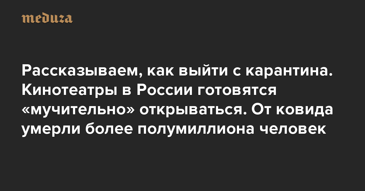 Вечерний Коронавирус Рассказываем, как выйти с карантина. Кинотеатры в России готовятся «мучительно» открываться. От ковида умерли более полумиллиона человек
