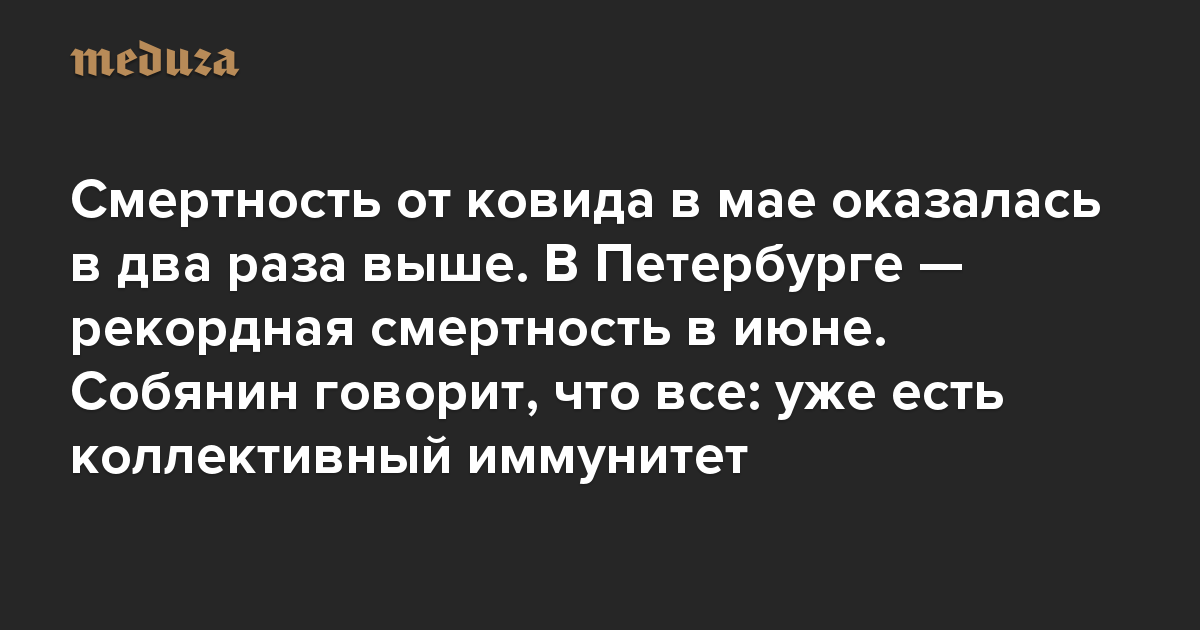 Вечерний Коронавирус Смертность от ковида в мае оказалась в два раза выше. В Петербурге — рекордная смертность в июне. Собянин говорит, что все: уже есть коллективный иммунитет