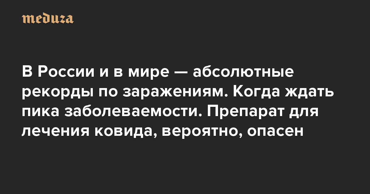 это рассылка «Медузы» о коронавирусе на время пандемии. Она выходит по будням вместо «Вечерней Медузы». Если это письмо вам прислал кто-то из знакомых и вы еще не подписаны на рассылку, подпишитесь здесь. Если вы читаете это на сайте, поделитесь ссылкой в социальных сетях.