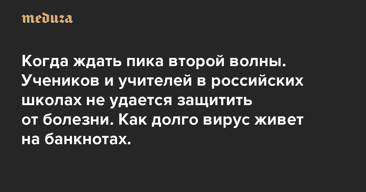 Вечерний Коронавирус Когда ждать пика второй волны. Учеников и учителей в российских школах не удается защитить от болезни. Как долго вирус живет на банкнотах.