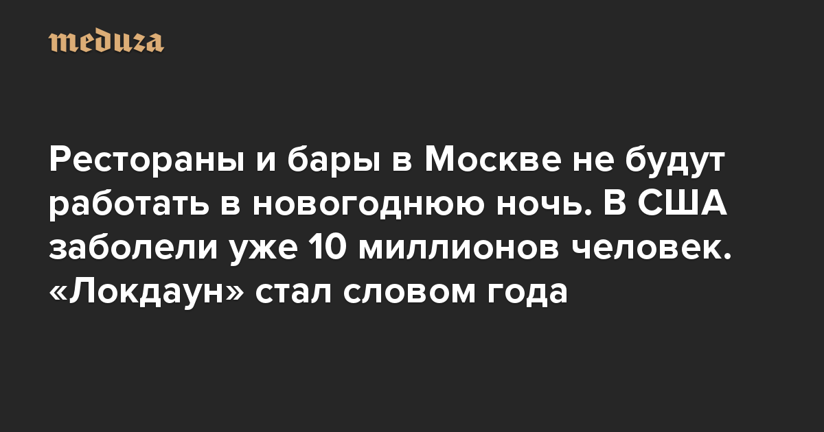 Вечерний Коронавирус Рестораны и бары в Москве не будут работать в новогоднюю ночь. В США заболели уже 10 миллионов человек. «Локдаун» стал словом года
