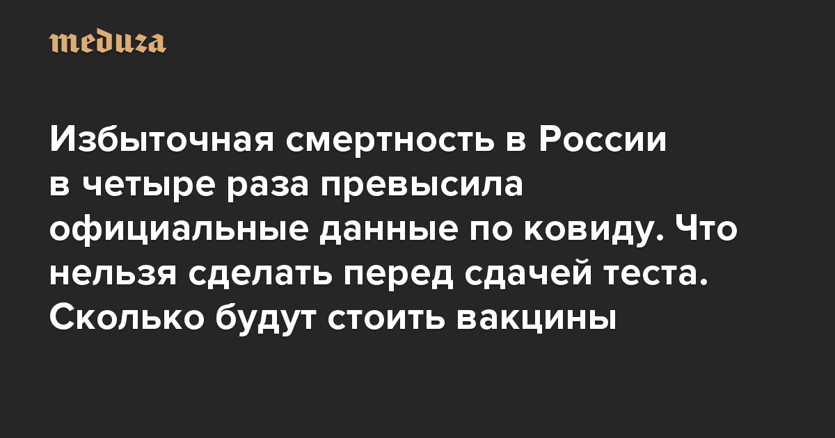 Вечерний Коронавирус Избыточная смертность в России в четыре раза превысила официальные данные по ковиду. Что нельзя сделать перед сдачей теста. Сколько будут стоить вакцины