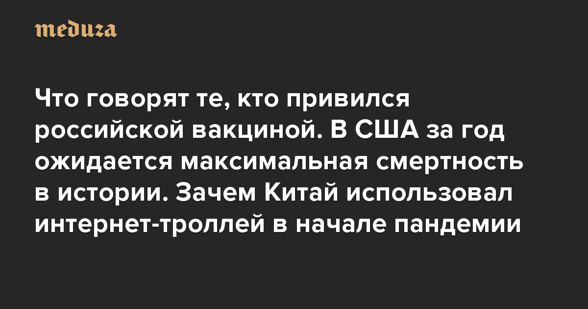 Вечерний Коронавирус Что говорят те, кто привился российской вакциной. В США за год ожидается максимальная смертность в истории. Зачем Китай использовал интернет-троллей в начале пандемии