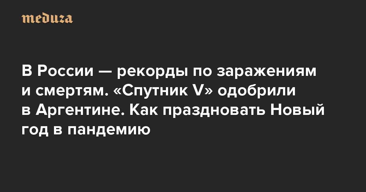 Вечерний Коронавирус В России — рекорды по заражениям и смертям. «Спутник V» одобрили в Аргентине. Как праздновать Новый год в пандемию
