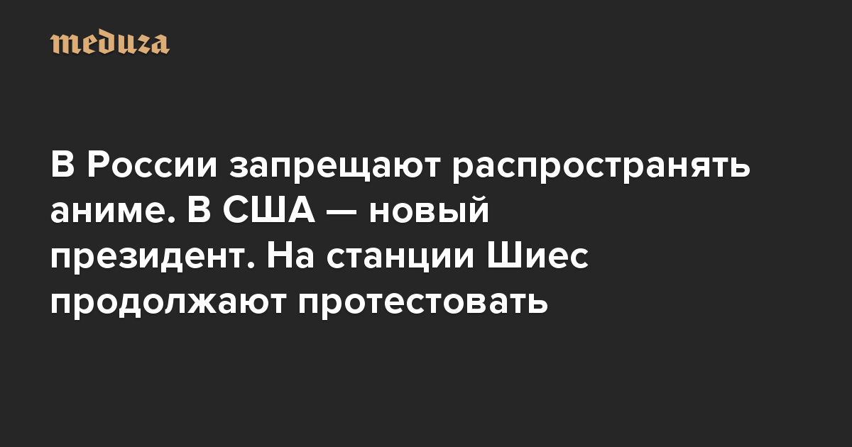 Вечерняя Медуза В России запрещают распространять аниме. В США — новый президент. На станции Шиес продолжают протестовать
