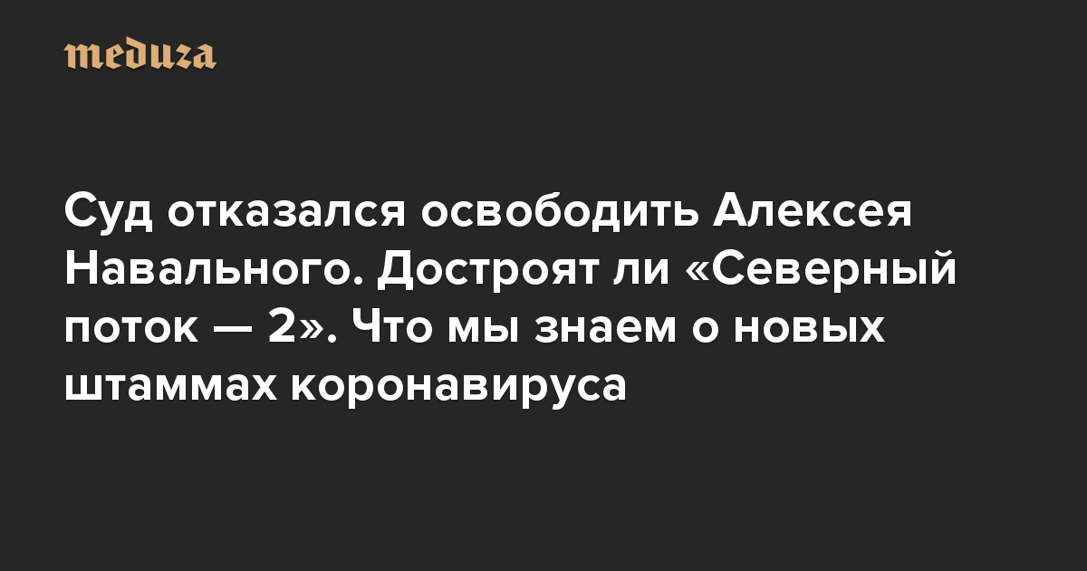 Вечерняя Медуза Суд отказался освободить Алексея Навального. Достроят ли «Северный поток — 2». Что мы знаем о новых штаммах коронавируса