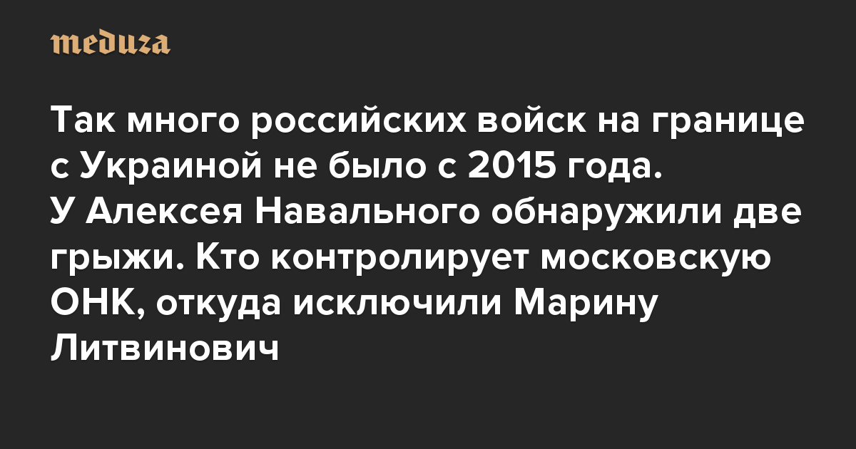 Вечерняя Медуза Так много российских войск на границе с Украиной не было с 2015 года. У Алексея Навального обнаружили две грыжи. Кто контролирует московскую ОНК, откуда исключили Марину Литвинович