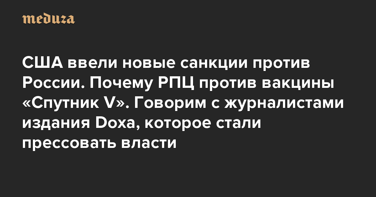 Вечерняя Медуза США ввели новые санкции против России. Почему РПЦ против вакцины «Спутник V». Говорим с журналистами издания Doxa, которое стали прессовать власти