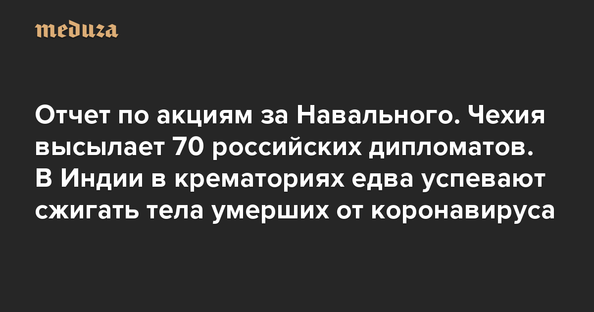 Вечерняя Медуза Отчет по акциям за Навального. Чехия высылает 70 российских дипломатов. В Индии в крематориях едва успевают сжигать тела умерших от коронавируса