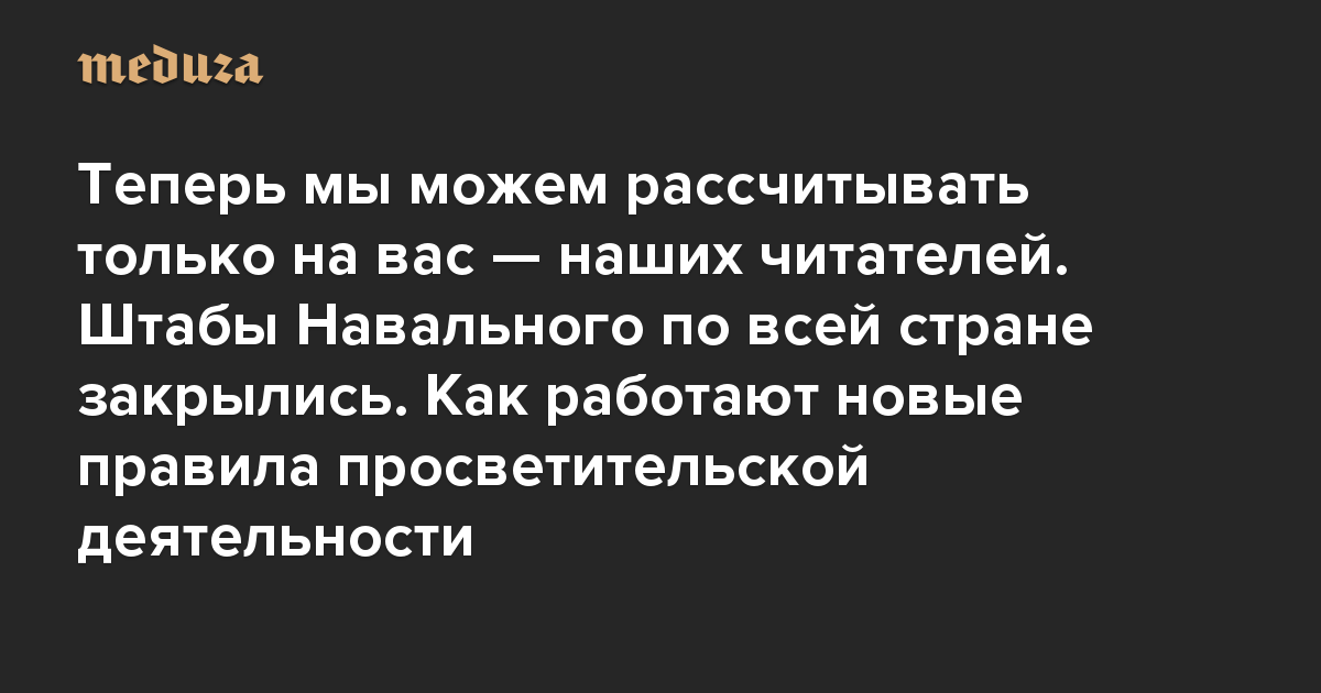 Вечерняя Медуза Теперь мы можем рассчитывать только на вас — наших читателей. Штабы Навального по всей стране закрылись. Как работают новые правила просветительской деятельности