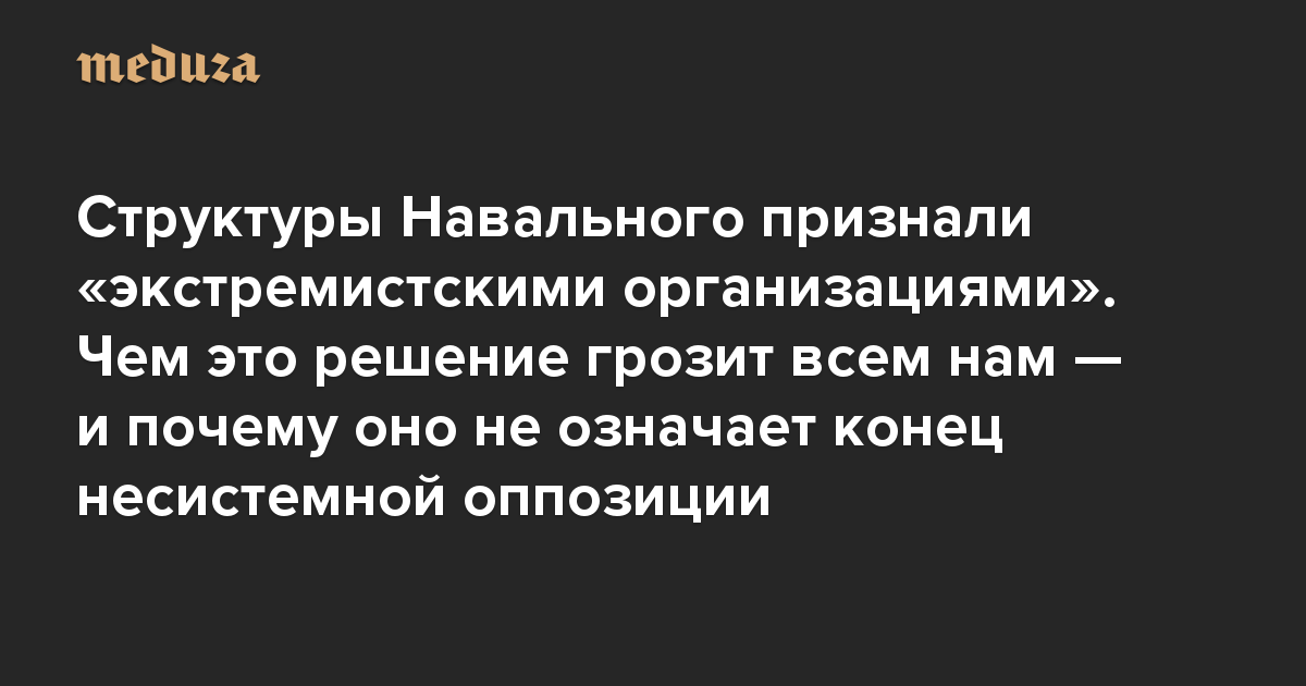 Вечерняя Медуза Структуры Навального признали «экстремистскими организациями». Чем это решение грозит всем нам — и почему оно не означает конец несистемной оппозиции