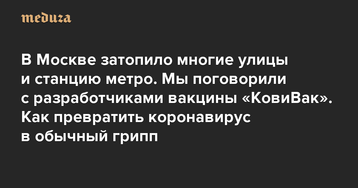 Вечерняя Медуза В Москве затопило многие улицы и станцию метро. Мы поговорили с разработчиками вакцины «КовиВак». Как превратить коронавирус в обычный грипп