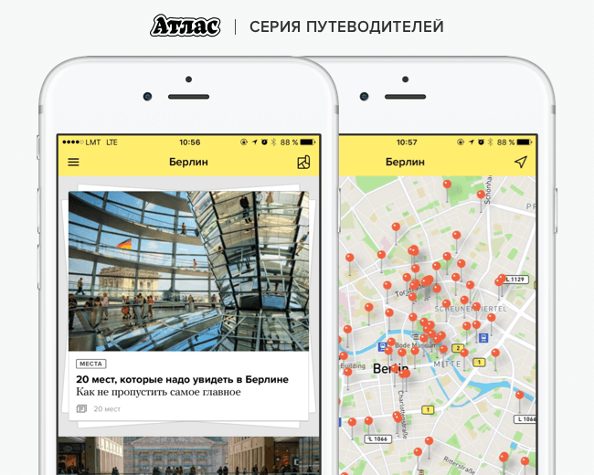 Можно и прямо здесь, в браузере. Но лучше загрузить в App Store или Google Play самостоятельные приложения «Атласа» (они так и называются: «Париж», «Берлин», «Барселона») и взять их с собой в путешествие. Все места с адресами и телефонами, все экскурсии и полезные сведения всегда будут у вас под рукой. Если заранее скачать все тексты, фотографии и карты в телефон, путеводитель будет работать без интернета — показывать, где вы находитесь, какие примечательные места есть поблизости, и даже прокладывать к ним дорогу.