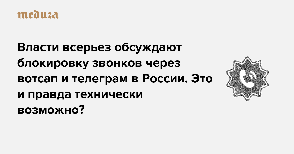 Власти всерьез обсуждают блокировку звонков через вотсап и телеграм в России. Это и правда технически возможно? Коротко рассказываем, что известно об этой инициативе