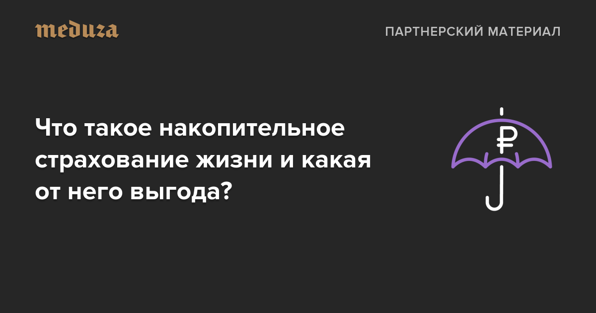 Как и любое другое. Вы делаете регулярные взносы, и в случае непредвиденной ситуации страховая выплатит крупное возмещение. Такая страховка — это определенный риск и для клиента, и для страховой компании. Вы платите за то, чего может не произойти, но в то же время вы защищаетесь от риска: если что-то все-таки случится, вам или вашим родственникам выплатят компенсацию. Как правило, она гораздо больше той суммы, которую заплатили вы сами. Но есть другой тип страхования — накопительное страхование жизни, или НСЖ. Несмотря на то что по программе действительно можно застраховать свою жизнь, НСЖ — это скорее система накопления.