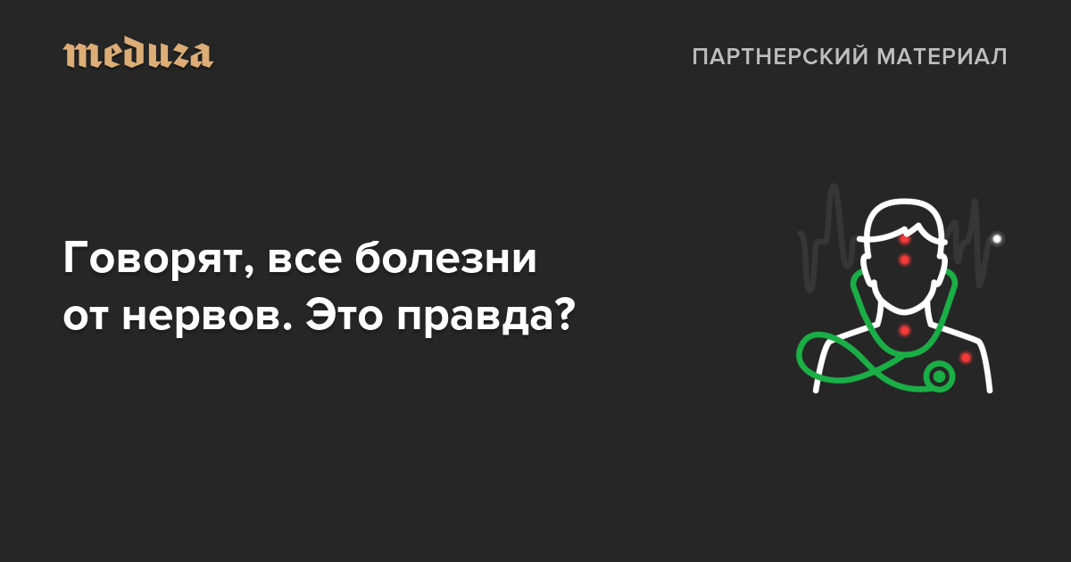 Нет, это миф. Отдельные, даже очень негативные, эмоции не становятся причинами заболеваний. Но если психологического стресса становится слишком много и это продолжается долго, то организм об этом сигнализирует. Люди начинают больше уставать, хуже спать, набирать или терять вес, хуже запоминать информацию, может возникнуть диарея или запор, головная боль, проблемы в сексуальной жизни. Стресс также усугубляет акне (но не провоцирует). Причиной таких сигналов может быть новая работа или увольнение, развод, утрата близкого человека, переезд и другие перемены в жизни.
