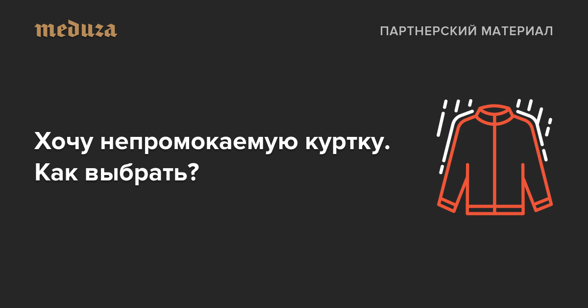 Если вы не выбираетесь на природу, а на улице проводите 5–10 минут по пути от дома до метро или парковки, то можно обойтись зонтом — непромокаемые куртки делают для другого. А вот если хотя бы иногда ходите в походы, гуляете по несколько часов в полях и лесах (или в ближайшем парке с собакой), катаетесь на лыжах или сноуборде и не отказываетесь от велосипеда в непогоду, то непромокаемая куртка может быть хорошим вариантом. Кстати, имейте в виду, что производители и продавцы в магазине могут называть такую куртку водонепроницаемой.