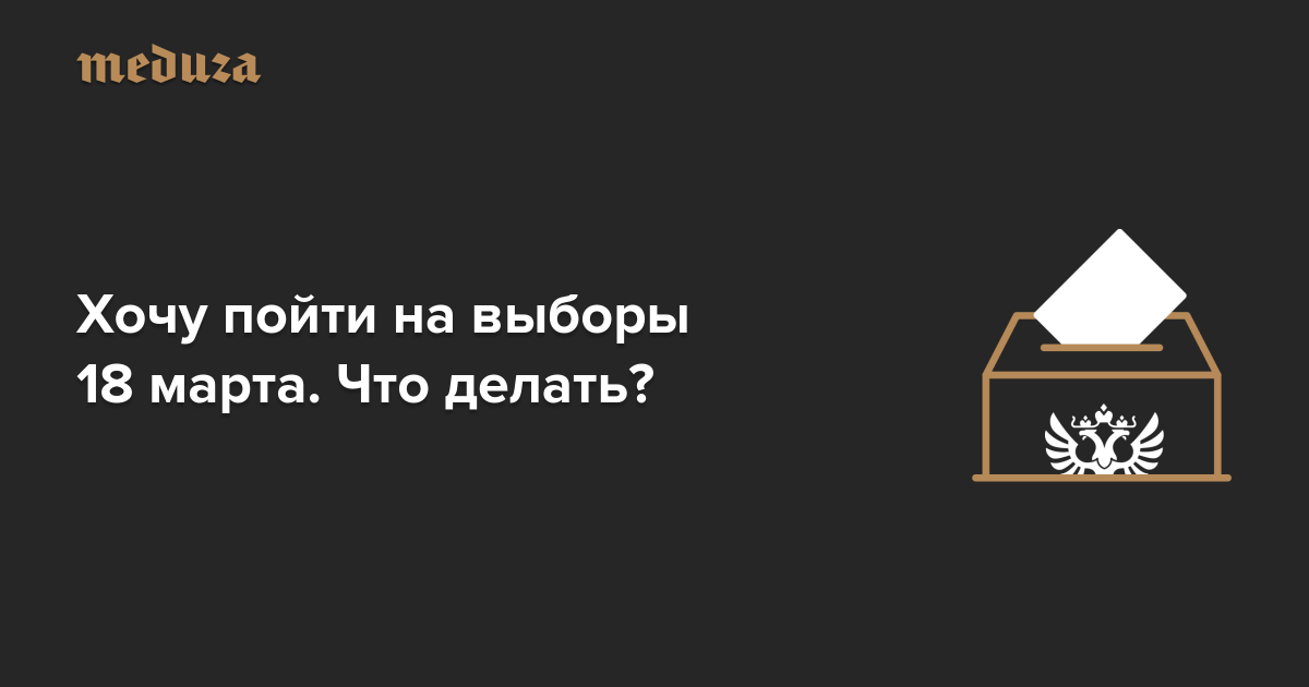 В России. Последний день, когда вы можете поменять участок, — это суббота. Необходимо до 14 часов 17 марта прийти на свой избирательный участок по месту жительства и оформить специальное заявление: оно похоже на открепительное, но с одним отличием — вы должны выбрать один конкретный участок (с поиском адреса вам помогут), на который придете 18 марта. Это заявление в день голосования нужно взять с собой вместе с паспортом.