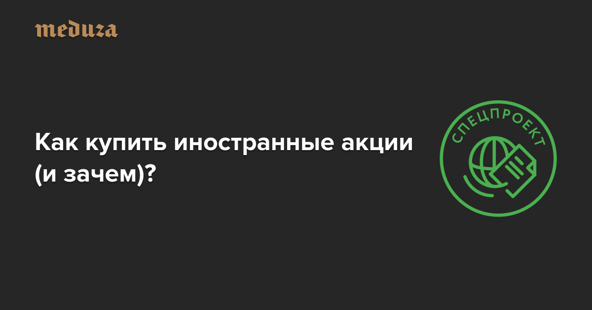 Все просто. Акции — это ценные бумаги, дающие право на владение частичкой той или иной компании. Иностранные — значит, что компании зарегистрированы не в России, а ведут бизнес по всему миру. Акции таких компаний можно купить, например, на Санкт-Петербургской бирже, но их там очень мало — всего 55, в то время как на биржах США их торгуется около 7000.