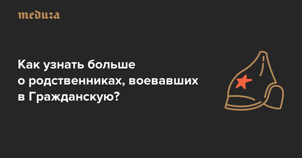 100 лет назад, в 1918 году, в России началась полномасштабная Гражданская война. Точную дату начала войны установить невозможно — историки по-разному отвечают на этот вопрос. Так случилось, что в российском обществе мало знают о Гражданской, — возможно, из-за того, что Великая Отечественная война вытеснила ее из коллективной памяти. Один из лучших способов побольше узнать об историческом событии или явлении — исследовать судьбы отдельных людей. «Медуза» попросила историка Юрия Лонгинова рассказать, как искать сведения о родственниках, которые участвовали в Гражданской войне.