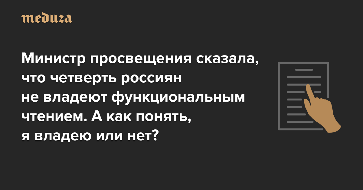 Министр просвещения сказала, что четверть россиян не владеют функциональным чтением. А как понять, я владею или нет?