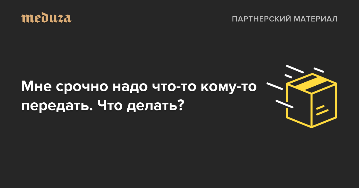 Вам нужно что-то куда-то срочно отправить по городу: например, ключи от дома — жене, забытый ноутбук — в офис. Отправиться сами вы не можете: с работы не отпроситься. Даже если отпроситесь, то на поездку туда-обратно из-за пробок уйдет минимум два часа, а общественным транспортом ехать неудобно.