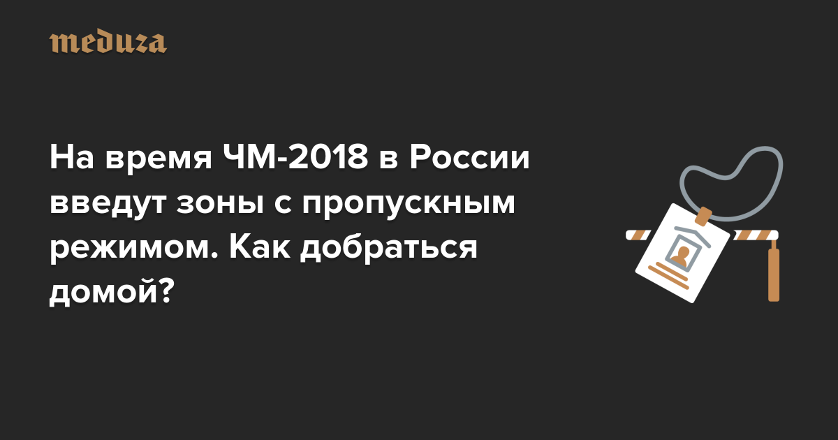 Мэрии городов, где пройдут матчи, уже начали публиковать описание границ «последней мили» и правила получения пропусков. Для этого обычно нужны паспорт, документы на квартиру и на машину.