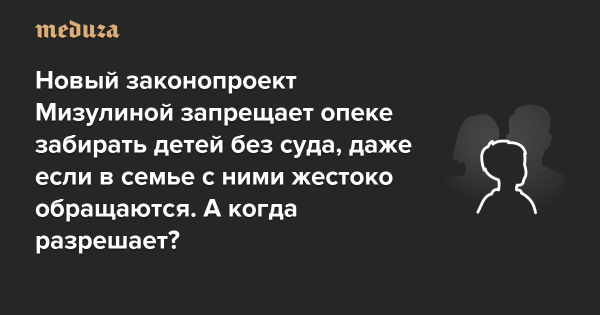 Новый законопроект Елены Мизулиной запрещает органам опеки забирать детей без суда, даже если в семье с ними жестоко обращаются. А когда разрешает?