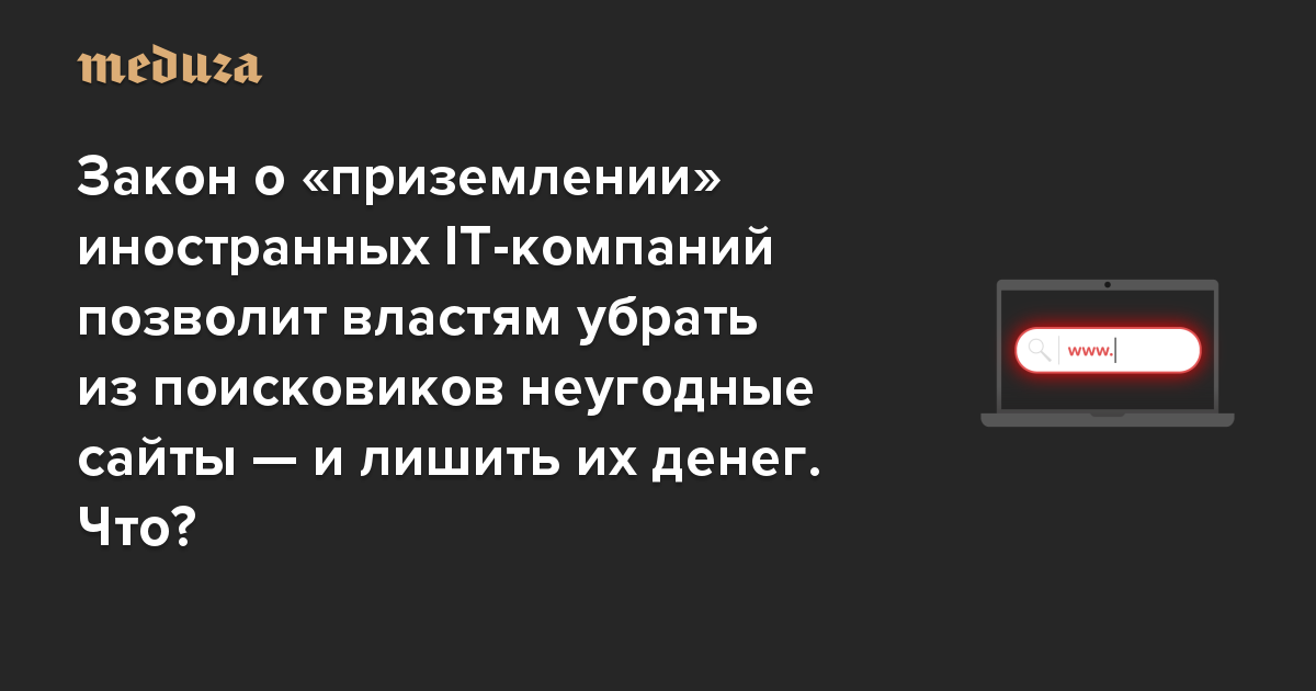 Пора познакомиться с законом о «приземлении» иностранных IT-компаний. Он позволит властям убрать из поисковиков многие неугодные сайты — и лишить их денег. Что?