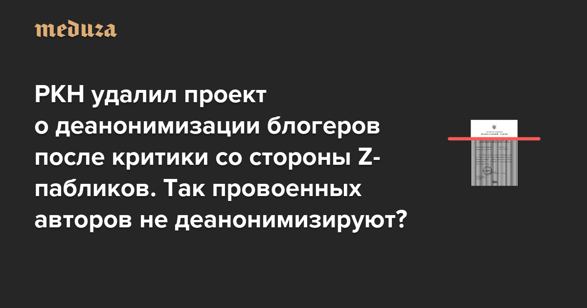 Роскомнадзор удалил проект о деанонимизации блогеров — после того, как Z-паблики обвинили его в продвижении «интересов украинских спецслужб» Авторов Z-каналов теперь не деанонимизируют?