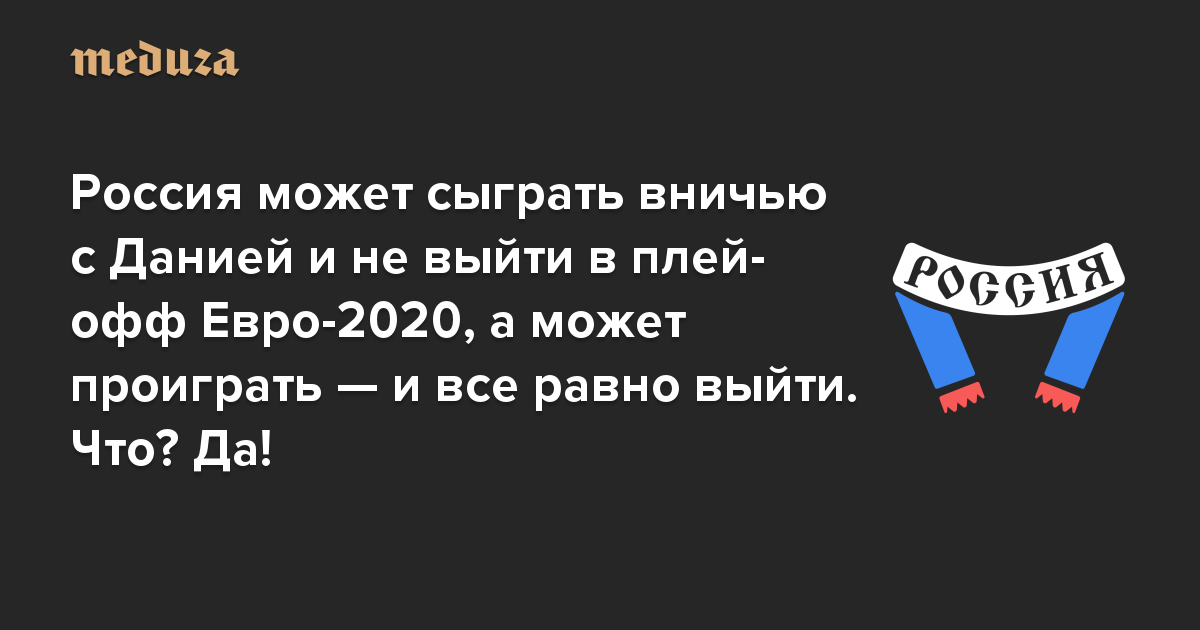 Россия может сыграть вничью с Данией и не выйти в плей-офф Евро-2020, а может проиграть — и все равно выйти. Что? Да! Рассматриваем все возможные расклады перед последним матчем в группе