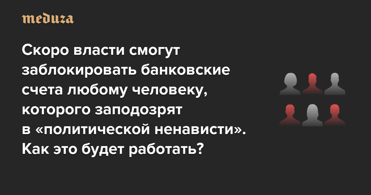 Скоро власти смогут заблокировать банковские счета любому человеку, которого заподозрят в «политической ненависти» Как это будет работать? И как много россиян ограничат в правах?