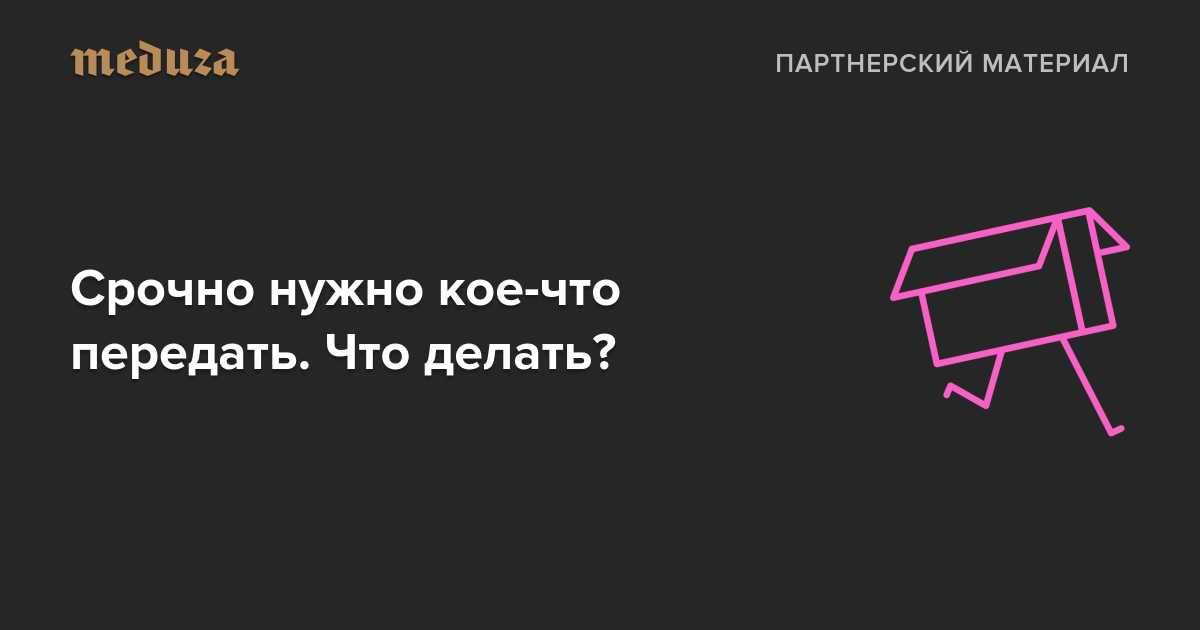 Вам нужно что-то отправить с одного конца города в другой. Естественно — срочно. Вам лично ехать некогда.