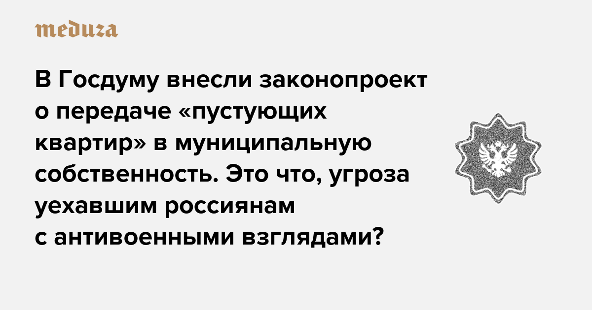 В Госдуму внесли законопроект о передаче «пустующих квартир» в муниципальную собственность. Это что, угроза уехавшим россиянам с антивоенными взглядами?