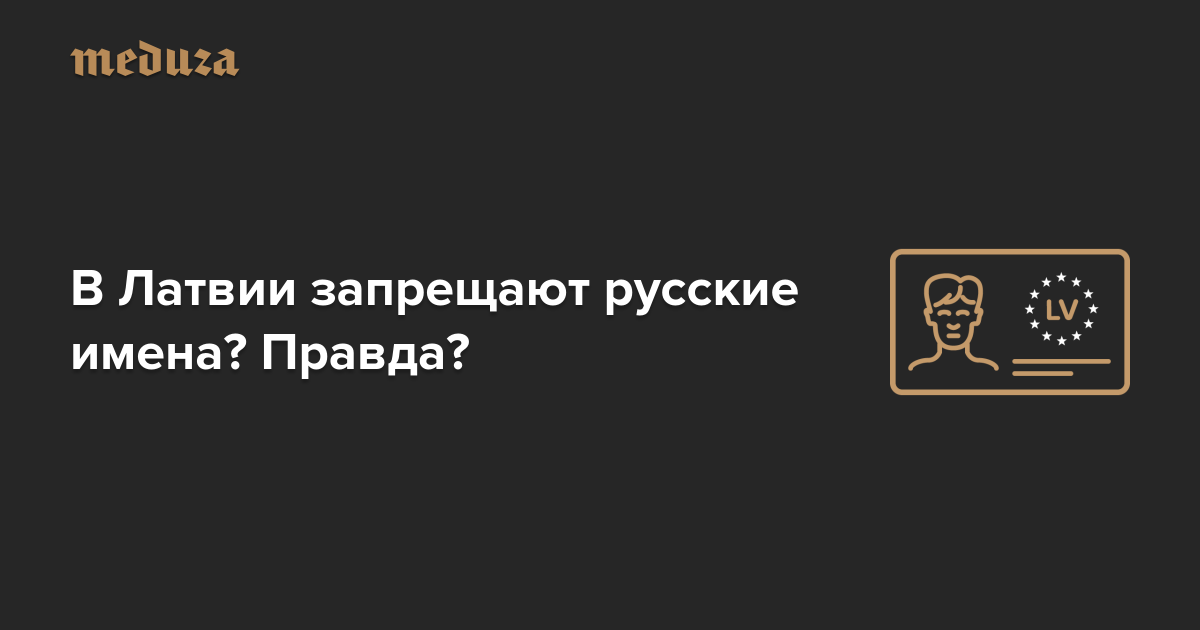 Нет, это неправда. Министерство юстиции действительно подготовило законопроект об именах, но там нет речи о запрете русских имен для детей. Законопроект называется «О смене имени и национальности», это новая версия уже действующего закона. Суть части, которая вызвала недовольство некоторых российских СМИ, примерно такова: если человек решил изменить имя или фамилию из-за того, что прежние мешают его интеграции в общество или по другим причинам, он должен объяснить не только то, чем плохо существующее сочетание, но и каким образом новое может исправить ситуацию. И там же оговорено, что новая запись должна соответствовать нормам латышского языка. В пояснительной записке говорится, что нынешняя процедура смены имени позволяет людям использовать в качестве имени все что угодно (прозвище, титул или отчество), что, по мнению авторов законопроекта, не соответствует традициям именования в латышском языке. При этом в качестве примера несоответствия авторы документа приводят такие имена, как X, Kirill и Miron.
