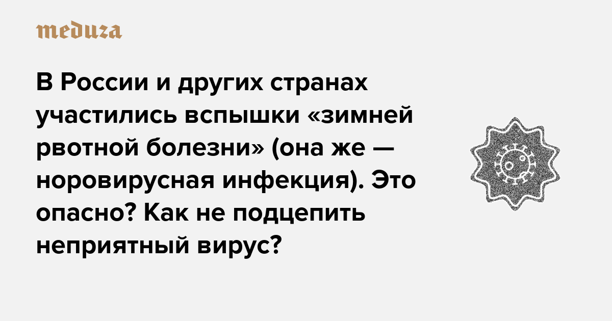 В России и других странах Северного полушария участились вспышки «зимней рвотной болезни» (она же — норовирусная инфекция). Это опасно? Коротко о том, как не подцепить неприятный вирус