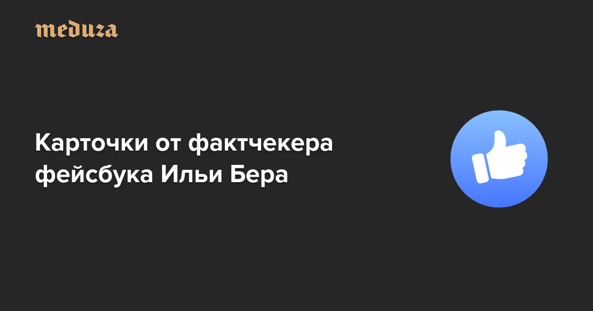 «Медуза» попросила главного редактора проекта «Проверено» и фактчекера Facebook Илью Бера рассказать об особенностях его работы в этой сети.